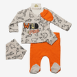 Комплект ясельний для новонароджених складається з п'яти елементів: кофта-сорочечка, повзуни, нагрудник, нецарапки, шапочка.