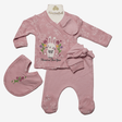 Комплект ясельний для новонароджених складається з п'яти елементів: кофта-сорочечка, повзуни, нагрудник, нецарапки, шапочка.Застібка кнопи.Склад: 100% бавовна.Виробник Туреччина.